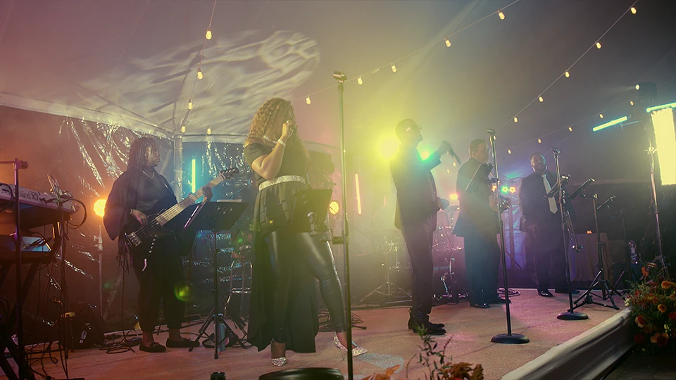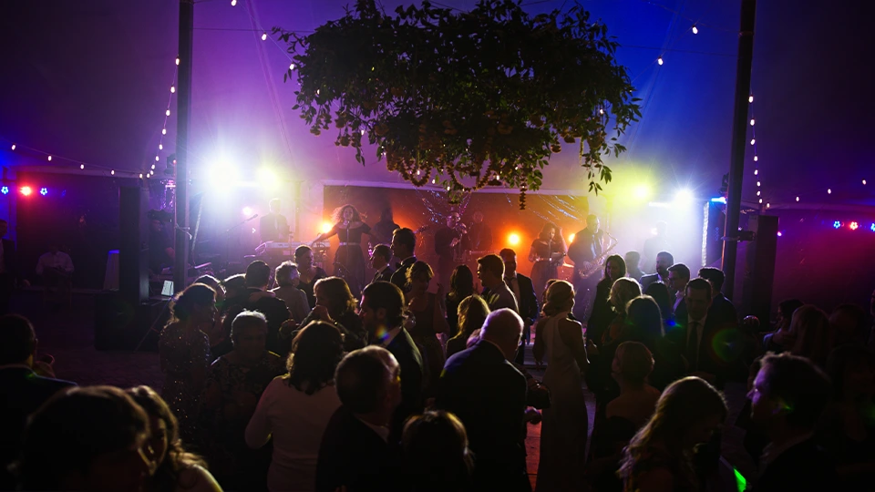All bands provide basic lighting for their performance area, but this isn’t decor lighting for the whole space. Light stands typically feature a few white or colored LED or par cans. Some bands can adjust lighting to fit the event, or they can skip it if you’re working with a separate lighting vendor.